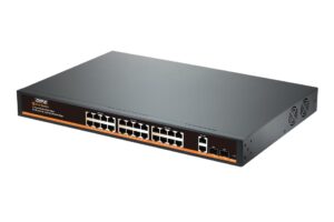 מק"ט: 38013סוויצ׳ 24+2+2 PoE 400W (Uplink 1G)סוויצ׳ 24 פורט PoE במהירות 10/100 כולל 2 פורטים שרשור Up-Link במהירות ג'יגה 100/1000 ועוד 2 פורט SFP. הספק כולל 400W. הספק מקסימלי לפורט בודד 30W. מארז מתכת. אפשרות תלייה לארון תקשורת. תומך VLAN, AI Watchdog. מתח הזנה AC220V.₪1,076