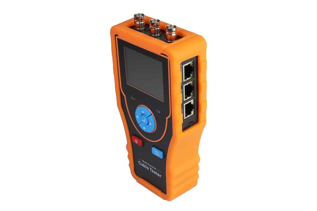 מכשיר בדיקות כבלים המאפשר בדיקות כבלי וחיבורי רשת RJ45, כבלי טלפון RJ45, אות חשמלית המגיעה ממצלמות CCTV אנלוגיות וכבלי BNC, מגיע עם Probe צלצלן. סוללת ליתיום נטענת בכבל USB כלול.
