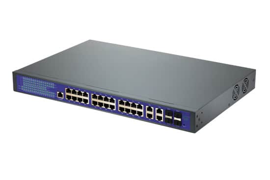 סוויצ'' 24 פורטים מנוהל +PoE במהירות ג'יגה 100/1000 כולל 4 פורטים שרשור Up-Link במהירות ג'יגה 100/1000 כולל 4 פורטים SFP.