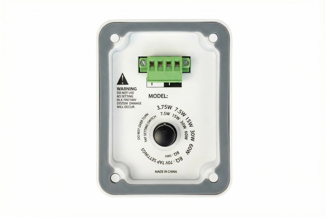 ווסת לבחירת עוצמה: 7.5/15/30/60W או 8 אוהם