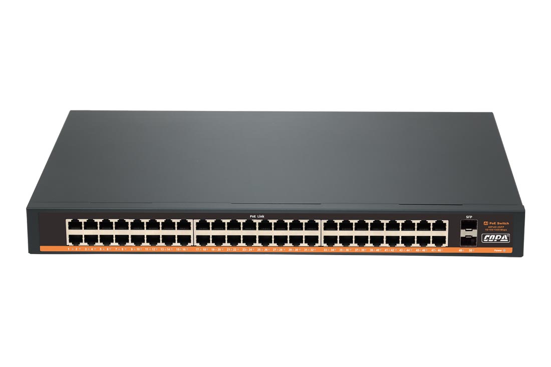 סוויצ׳ 48 פורטים PoE במהירות Mbps 100/1000 כולל 2 פורטים SFP.