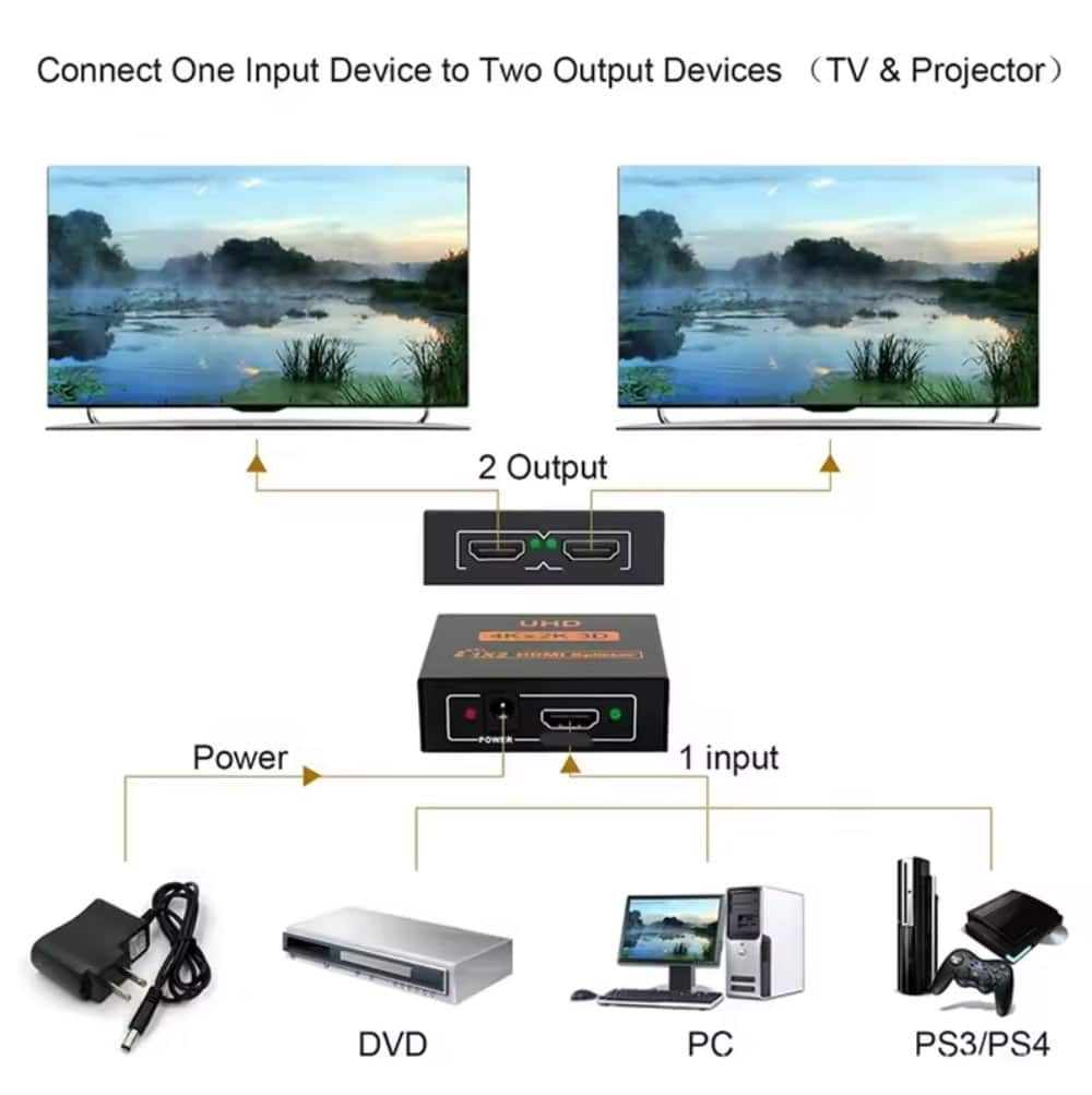 מפצל את אות הוידאו HDMI ממקור אחד למספר תצוגות פלט (מסך/מקרן ועוד..) במקביל.