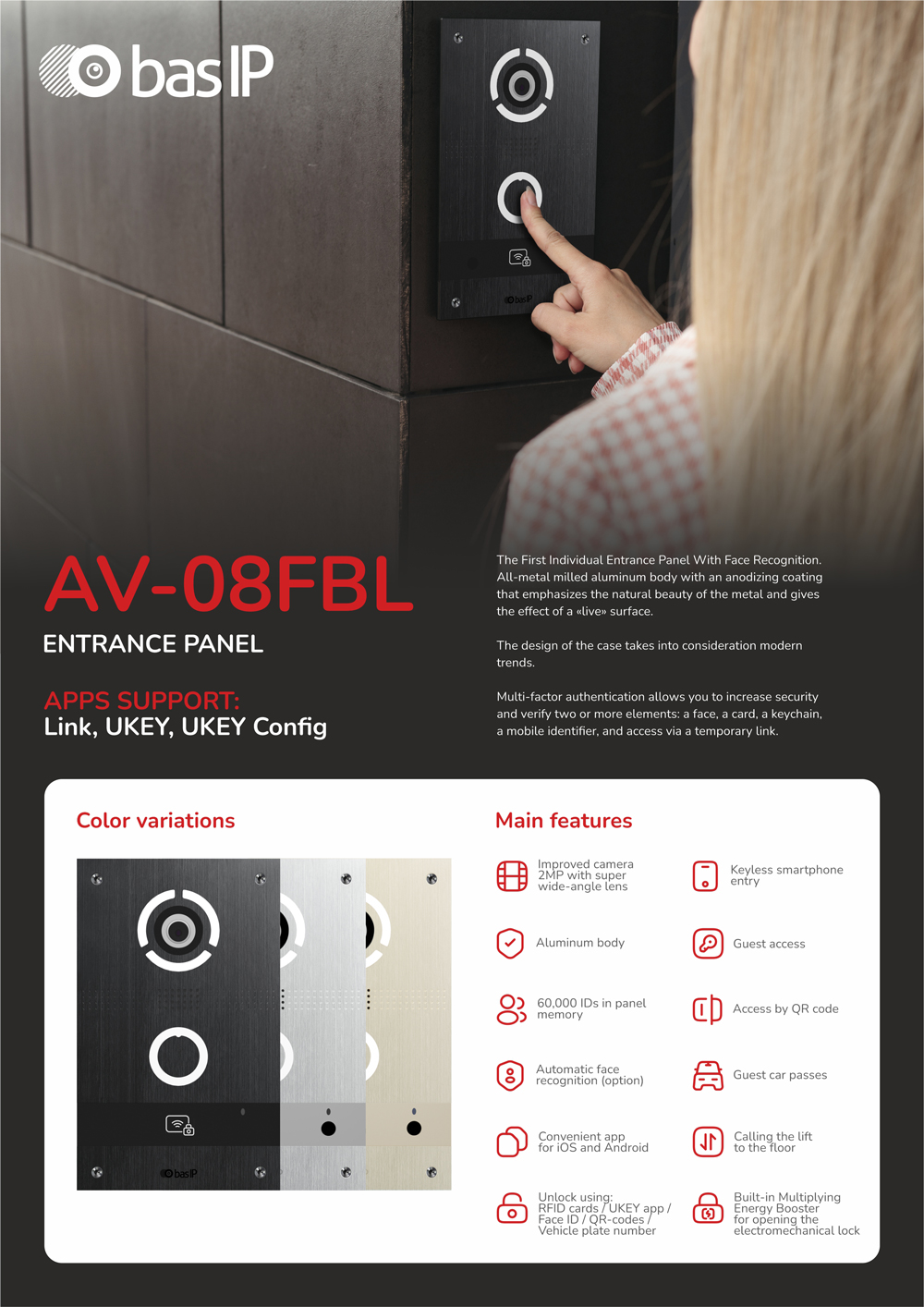 אפשרויות פתיחה: אפליקציות UKEY ו- Link, לחצן יציאה, מוניטור, תג, זיהוי פנים, QR, לינק, מס' רכב ו- Apple Watch.