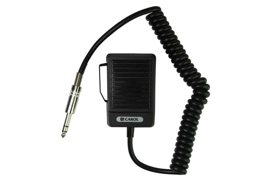 מיקרופון מונית Push to Talk למערכות כריזה וחירום. כולל קליפס מתכתי לתלייה.