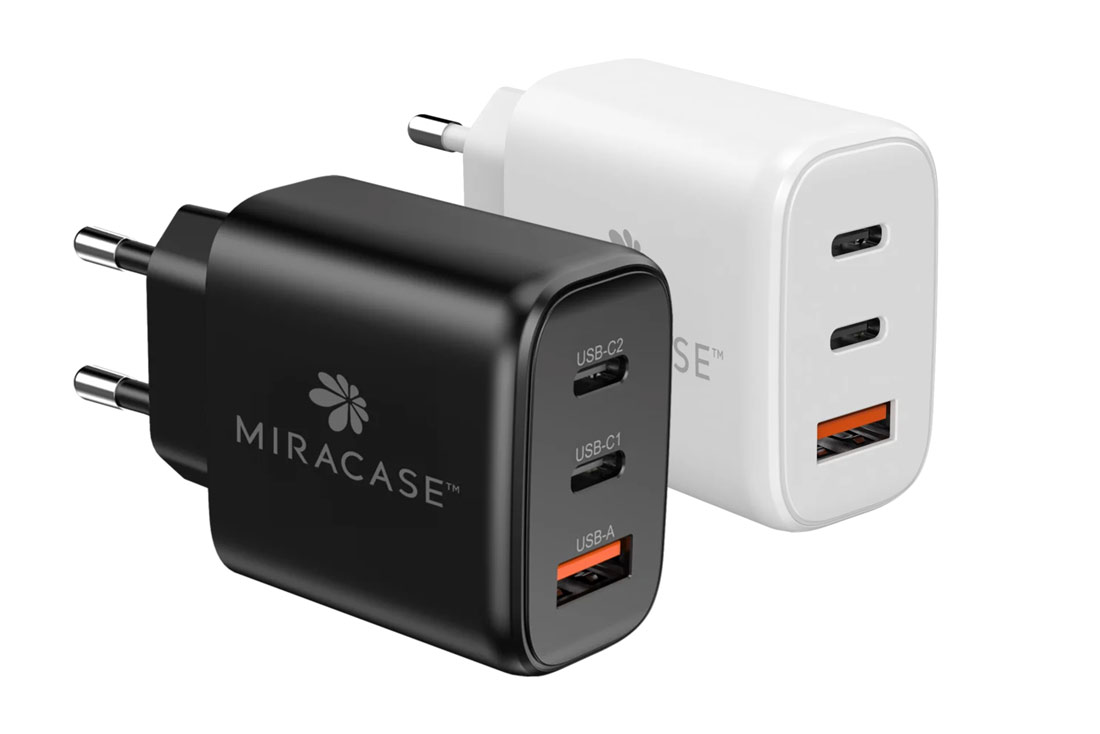 למטען יש 2 יציאות USB Type C PD ויציאה בודדת של USB A.